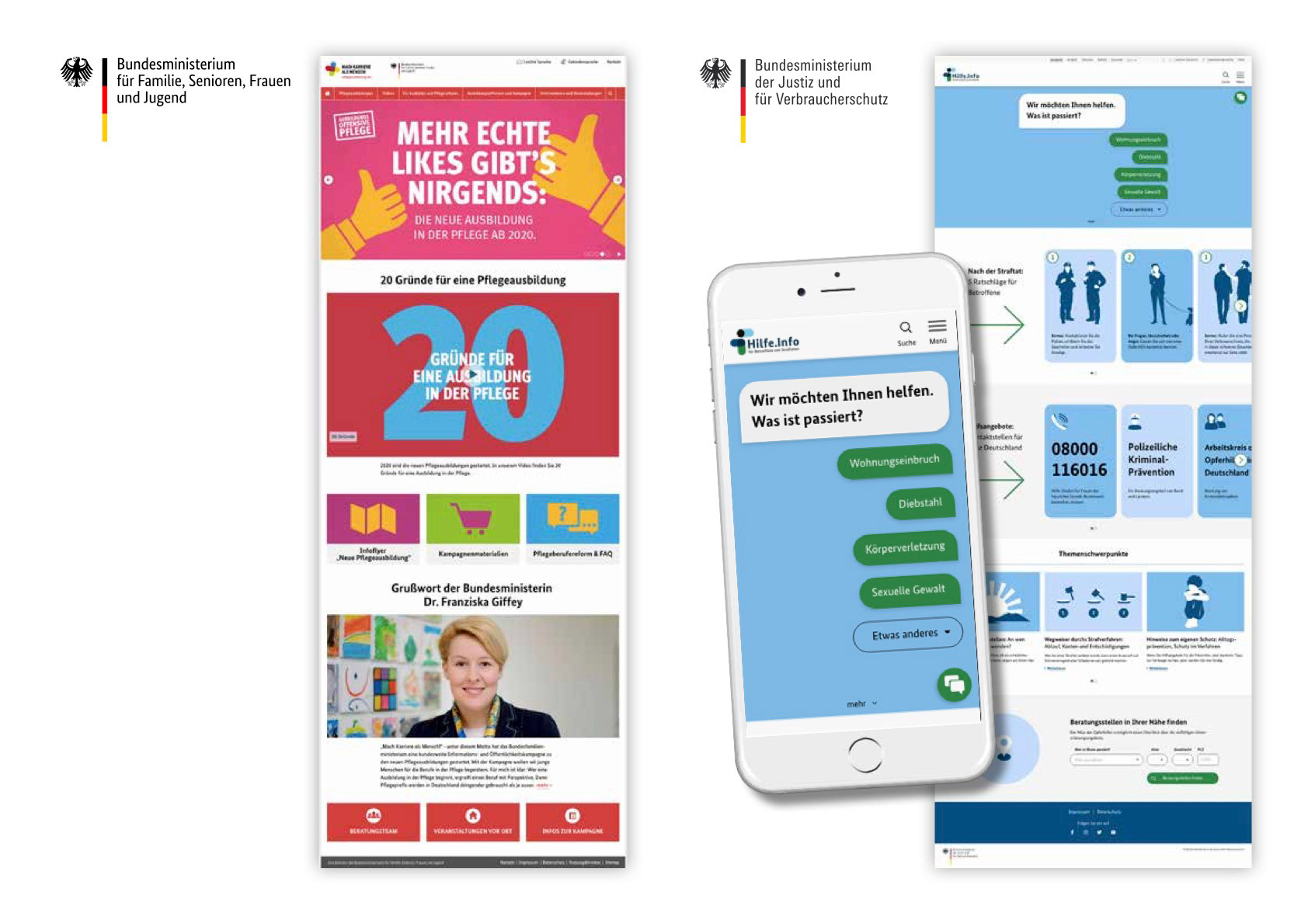 To answer these questions, a nationwide victim protection platform was developed for the Federal Ministry of Justice and Consumer Protection, which was launched in October 2020. It provides information on help and counselling options, financial support services and the criminal proceedings process. Using a counselling centre finder, victims can also quickly find help offers in their vicinity with telephone, online or personal counselling.
